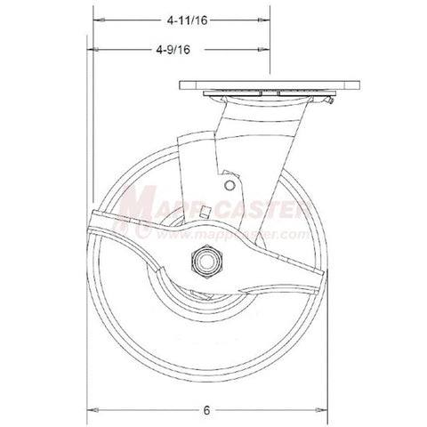 6" x 2" Ductile Steel V-Groove Wheel Swivel Brake Caster - 1,250 Lbs Capacity